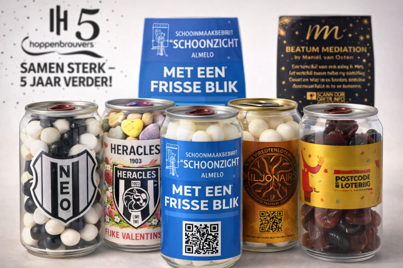 Onze veelzijdige snackblikjes zijn het ideale geschenk of de perfecte traktatie voor diverse gelegenheden en doelgroepen. Ze zorgen voor een originele uitstraling en onvergetelijke momenten.