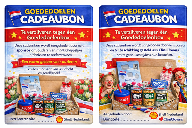 Bij Hollandse-geschenken.nl geloven we in de kracht van geven. Met de Goededoelenbox bieden we bedrijven de kans om een gesponsord gebaar te maken dat échte impact heeft. Samen brengen we aandacht, gezelligheid en een glimlach naar ouderen en maatschappelijke initiatieven, waaronder de fantastische CliniClowns.