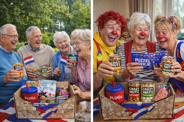 De Goededoelenbox is zorgvuldig samengesteld en heeft een consumentenwaarde van circa €40. Elke box bevat: Drie CRAZY NUTZ-blikjes, een gezellig spel (PLUG6), een ontspannend puzzelboekje, een handige verjaardagskalender en een selectie Hollandse lekkernijen, alles verpakt in een feestelijke Hollandse verpakking. En extra mooi: alle boxen worden met zorg ingepakt door mensen met een afstand tot de arbeidsmarkt, wat extra maatschappelijke waarde toevoegt.